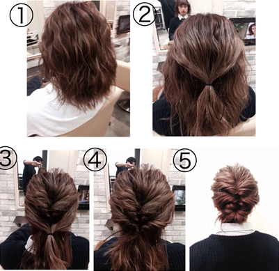 ミディアムくらいの長さの人なら、簡単なねじりアップがオススメです。